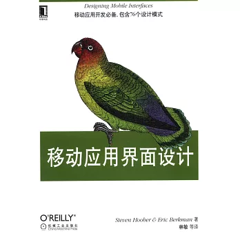 本書的兩位作者是移動設備領域的設計專家,他們經過多年的研究和實踐,總結並提出了76個設計模式,包括頁面布局、信息呈現、博客來書店控制與確認、深層獲取、標注與指示符、信息空間、交互控件、聲音與振動、傳感器等移動界面設計的各個方面。博客來網路書店博客來網路書局博客來對於每個模式,作者都從設計問題及解決方案的討論開始,詳細講解各種模式的交互細節、呈現細節、變形處理,還揭示了適用范圍和容易出現的問題。